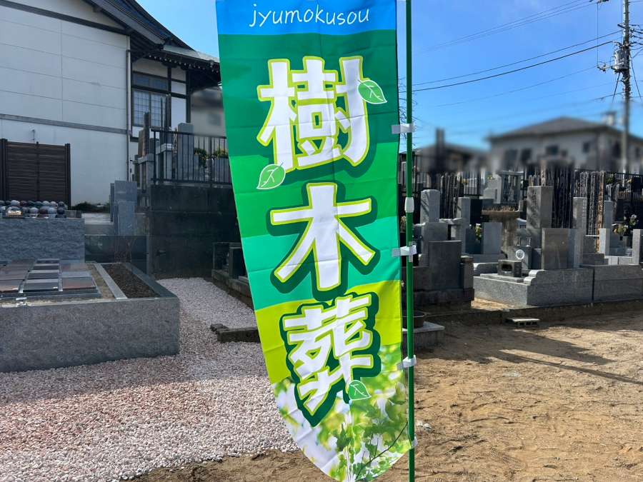ホームからご覧になって「あれは何かな?」と思われた方にも、樹木葬だと気付いていただけるようになりました^^ 前を通りかかって気になっているご様子の方も見られましたので、気軽に立ち寄っていただけるように、ご見学ののぼりも設置しました。