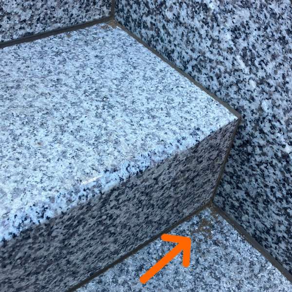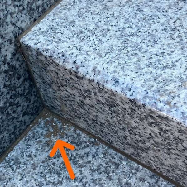 こちらは区画の間にある階段部分です。こちらも隅に砂などがたまっています。