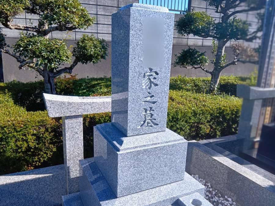 市川市霊園9区芝生墓地にて、奥様の故郷への想いを込めた洋型墓石を建立