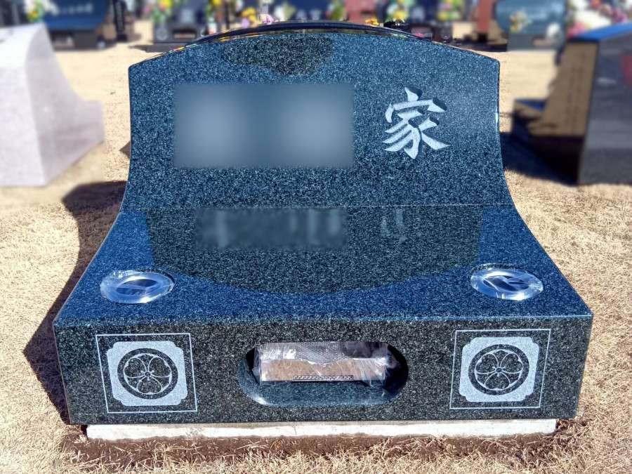 浦安市墓地公園にて、インド産SRを使用した大型のお墓を建立しました。緑がかった上品な色合いと重厚感を備えつつ、丸みを持たせた柔らかな仕上がりです。